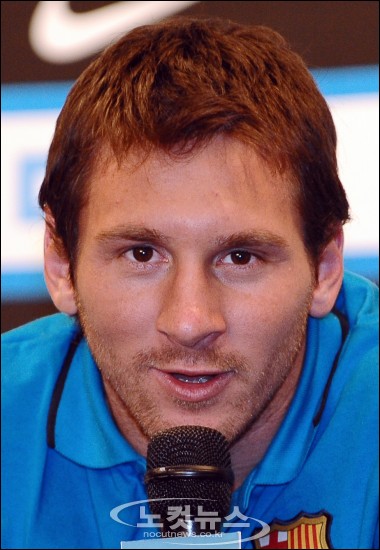오는 4일 열리는 'FC바르셀로나 초청 K리그 올스타전 2010'을 앞두고 2일 오후 FC바르셀로나 선수단이 내한한 가운데 서울 발산동 메이필드 호텔에서 열린 공식 기자회견에서 리오넬 메시가 취재진의 질문에 답하며 환하게 웃고 있다.