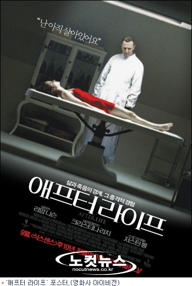 ‘애프터 라이프’는 사망선고 후 다시 눈을 뜬 한 여자의 곁에 ‘그녀의 죽음’을 주장하는 장의사가 등장하면서 벌어지는 장례식 전 3일 동안의 미스터리를 담은 영화. 사망선고 후 다시 살아나는 미스터리한 의문의 의학 현상인 라자루스 신드롬의 실체를 선보일 예정이다.