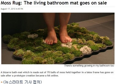 스위스에 살고 있는 응우옌 라 짠은 2년전 과제를 위해 이끼 욕실 매트를 만들었다. 70여개의 이끼 덩어리들을 라텍스 틀에 고정시켜 살아있는 매트를 만든 것.