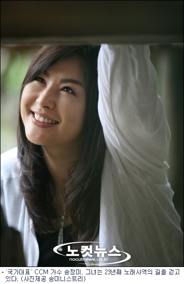 [BestNocut_R] 1967년생인 CCM가수 송정미는 1988년 뮤지컬 ‘가스펠2’로 데뷔한 뒤, 직접 작사작곡한 ‘축복송’이 세계 16개국 언어로 번안돼 애창되는 등 국내 대표적인 CCM가수로 자리잡아 왔다. 1999년부터 2009년까지 숭실대학교 음악원 교회음악과 주임교수로 재직했으며, 한국컴패션 홍보대사 등으로 활약한 바 있다.