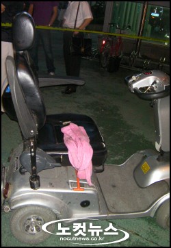 사고현장에 설치된 CCTV에는 이 씨가 문이 닫혀 내려가는 승강기를 전동휠체어로 세 차례 충돌해 부서진 문틈으로 떨어지는 모습이 담겨 있다.
