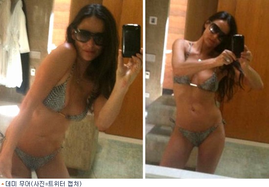 최근 무어가 미국 로스앤젤레스 자택 욕실에서 찍은 비키니 사진을 소셜네트워킹 사이트 트위터에 올리자, 1일 영국 매체 데일리메일 등 외신들은 무어의 사진들을 공개하며 주목했다. [BestNocut_R]