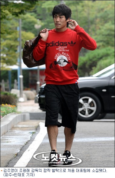 사실 김주영의 발탁은 이른바 인맥축구라는 소리를 들었다. 연세대 시절 축구를 그만뒀던 김주영을 경남으로 이끈 것도, K-리그 2년차에 불과한 김주영을 대표팀에 발탁한 것도 모두 조광래 감독이었기 때문이다. 게다가 조광래 감독은 데뷔전이었전 나이지리아전에서도 경남 시절 제자인 윤빛가람을 뽑기도 했다.