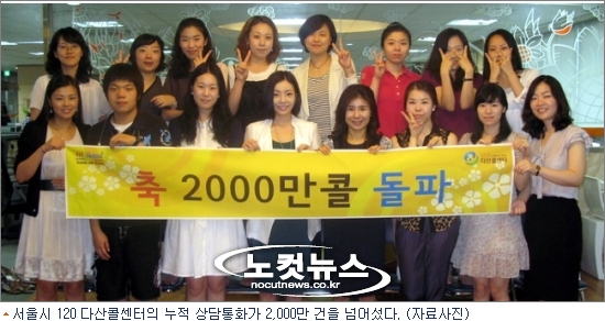 120 다산콜센터에는 현재 551명의 상담원을 통해 하루 평균 약 4만3,000여통의 전화 상담이 이루어지고 있고 청각언어장애인을 위한 수화 및 문자상담, 외국인을 위한 5개 외국어 상담, 휴대전화 문자메시지 상담, 홀몸어르신 안심콜 서비스 등이 실시되고 있다.