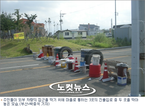 주민들은 마을을 통하는 세곳의 출입로중 두 곳에 타이어와 가전제품 등으로 엉기성기 방어막을 쳐놓고 수십차례에 걸쳐 해당 강서구청에 신고를 하고 있지만 상황은 나아지지 않고 있다.