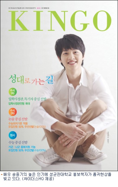 성균관대학교 입학관리팀 관계자는 “경영학부 송중기 학우는 3년째 홍보책자 표지 모델로 활약하고 있다. 작년에는 이례적으로 홍보책자를 추가 발행했는데, 올 여름에는 그 수가 2배가 넘게 늘었다. 2010년 여름, 6만부를 발행했는데 고등학생들의 뜨거운 반응에 금방 소진되어 긴급히 4만부를 추가 발행했다”라며 드라마 ‘성균관 스캔들’로 좋은 모습을 선보이고 있는 송중기 학우의 뜨거운 인기가 피부로 와 닿을 정도”라고 전했다.