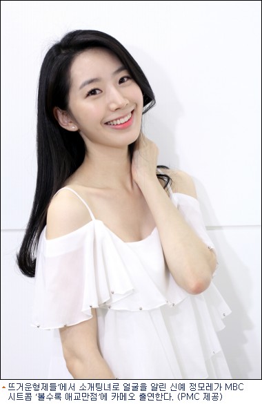 MBC 예능프로그램 ‘일요일 일요일 밤에-뜨거운형제들’(연출 오윤환)에서 소개팅녀로 얼굴을 알린 신예 정모레가 MBC 시트콤 ‘볼수록 애교만점’에 카메오 출연한다.