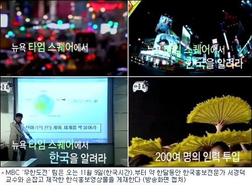 MBC'무한도전' 팀이 뉴욕 심장부에 한식을 홍보한다.