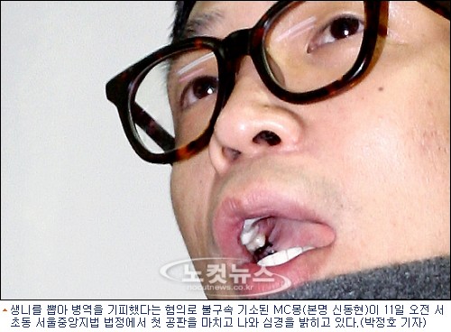 고의발치로 병역을 기피했다는 혐의를 받고 있는 가수 MC몽(31, 본명 신동현)이 첫 공판에서 “치아 통증을 참지 못해 치과의사의 권고로 뽑은 것일 뿐”이라고 주장했다.