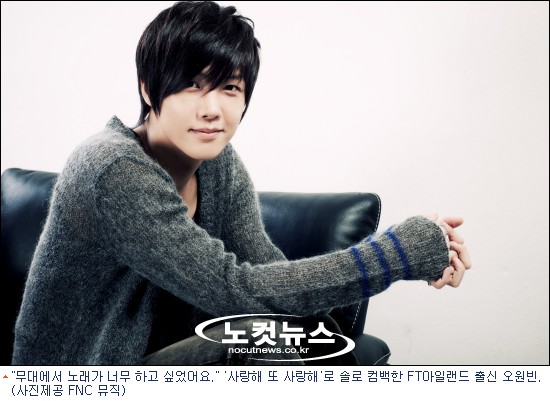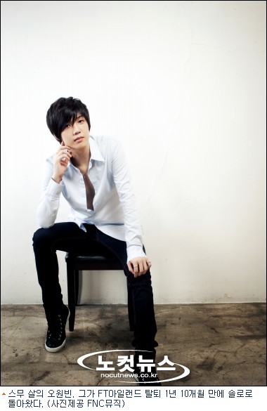 5인조 꽃미남 밴드 FT아일랜드 출신 오원빈(20)이 탈퇴 1년 10개월 만에 솔로로 컴백했다. 브라운아이드걸스 미료와 함께 한 싱글 ‘사랑해 또 사랑해’를 발표하고 오랫동안 기다려 온 팬들 곁에 돌아온 것. 특유의 눈웃음을 그대로 지닌 채로 성인으로 훌쩍 자라난 오원빈을 만났다.