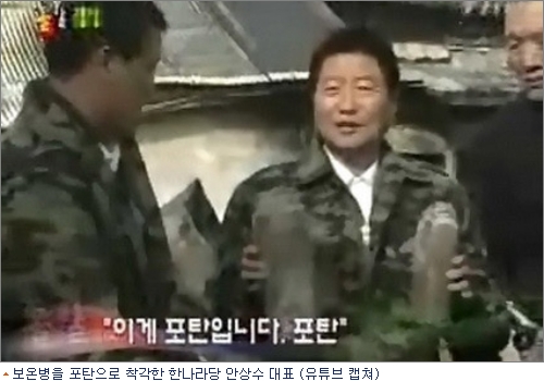 지난달 24일 한나라당 안상수 대표는 처참해진 연평도 포격 현장을 찾았다. 안 대표는 그 곳에서 발견한 화염에 그을린 보온병을 북한이 쏜 '포탄'으로 착각해 "이게 포탄이다"고 말했고 이 장면이 담긴 동영상은 12월 30일 YTN '돌발영상'을 통해 공개됐다.