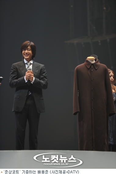 배용준은 14일 오후 6시, 일본 도쿄돔에서 진행된 일본 DATV의 자선기획'미소프로젝트' 1탄 ‘메시지 투 아시아’에서 지난 10년 간 고이 간직해 왔던 준상이 코트를 애장품 경매품으로 내놓았다.