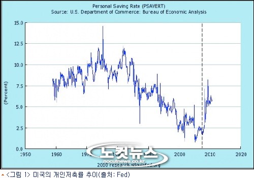 2008년 3월에 0.8%에 그쳤던 저축률이 2008년 하반기부터 급등해 최근 6%에 육박하고 있다. 이는 1980년 이후 30년간 이어져오던 소비중심의 패러다임이 이제 완전히 뒤바뀌었다는 사실을 입증한다.