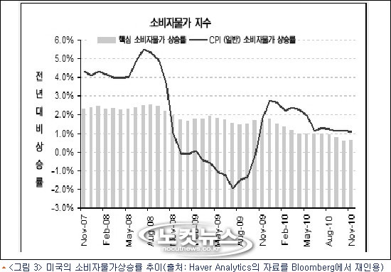 달러의 가치에 대한 글로벌 시장의 평가를 보여주는 달러인덱스는 미국 Fed의 2차 양적완화가 실제 집행되기 시작한 11월초부터 오히려 상승하고 있다.