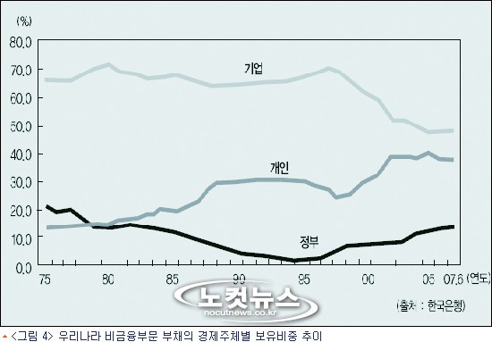 <그림 4> 우리나라 비금융부문 부채의 경제주체별 보유비중 추이