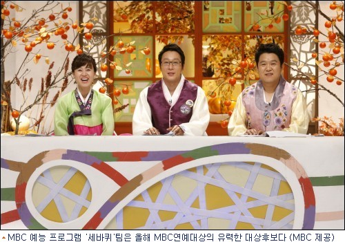 때문에 MBC내부에서는 ‘세바퀴’팀의 단체 수상이 점쳐지고 있는 상황이다. ‘세바퀴’는 지난해 MBC내부에서 주어지는 자체 최우수 프로그램상을 수상한데 이어 올해 ‘세바퀴’ 제작진은 올해 MBC공로상을 수상하는 등 내부 시상식의 상을 휩쓸었다.