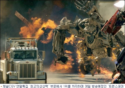 부문별로 살펴보면 28일 밤 10시에는 '최고의 SF수퍼히어로' 부문에서 1위를 차지한 액션 블록버스터 '아이언 맨'이 안방 시청자들을 찾으며, 29일에는 '최고의 스릴러' 부문 1위를 차지한 손예진, 고수 주연의 스릴러 '백야행'이, 30일에는 '최고의 상상력' 부문 1위 '트랜스포머'가 방송된다.