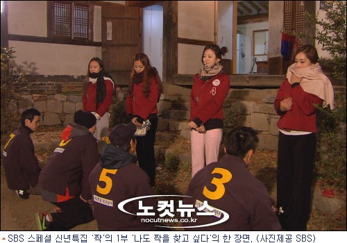 1부 ‘나도 짝을 찾고 싶다’는 올해초 SBS가 선보였던 다큐멘터리 ‘출세’ 시리즈와 같은 리얼리티 시츄에이션 다큐멘터리다. 28일 서울 양천구 목동 SBS 사옥에서 열린 시사회에서 처음 공개된 ‘짝’ 1부는 ‘애정촌’이라는 가상의 장소에서 12명의 남녀들이 짝을 찾는 과정을 그린다.