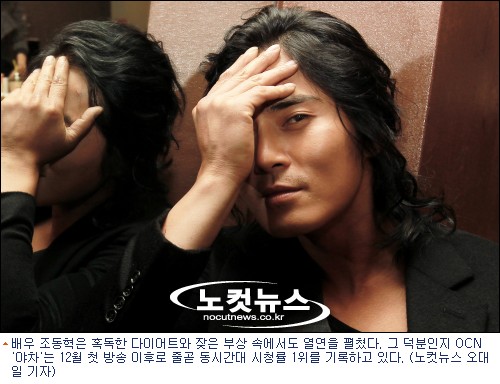 “처음 이 작품을 한다고 했을 때 주변으로부터 ‘드디어 네 작품을 만났다’는 축하 인사를 많이 들었어요. 시트콤, 드라마, 연극 등을 했지만 남자들이 좋아하는 이런 액션 사극에서 외모나 내면이나 멋진 연기를 보여주고 싶은 욕심이 있었죠. 실제로 저는 배우 인생에 이런 캐릭터는 또 못 만날지도 모릅니다. 저와 잘 어울리고 죽을만큼 힘들고 그러면서도 행복한 캐릭터는요.” [BestNocut_R]연일 동시간대 시청률 1위를 기록하고 있는 ‘야차’. “이건 누가 뭐래도 내 드라마”라고 자신하는 조동혁 덕분에 이런 성적이 가능한 것은 아닐까. 죽을뻔한 위기를 넘기면서도 훌훌 털고 ‘백록’ 연기에 매달린 조동혁이 있기에 말이다.