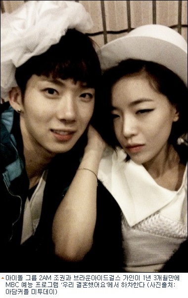 아이돌 그룹 2AM 조권과 브라운아이드걸스 가인이 1년 3개월만에 MBC 예능 프로그램 ‘우리 결혼했어요’에서 하차한다.