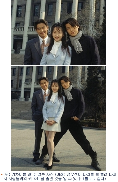 특히 186cm의 훤칠한 키를 자랑하는 정우성은 특유의 매너(?)를 발휘해 자신의 롱다리를 쫙 벌려 이병헌과 김수지와의 키를 맞추는 독특한 포즈를 취했다.