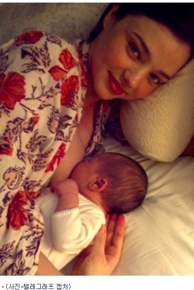 원조 베이글녀인 호주 출신 슈퍼모델 미란다 커(27)가 최근 출산한 아들에게 모유를 먹이는 훈훈한 사진을 공개해 주목을 받고 있다.