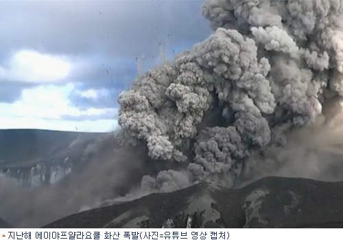 ☞ 지난해 에이야프얄라요쿨 화산 폭발 영상 보러 가기