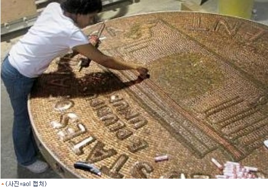 미국의 한 싱글맘이 8만개가 넘는 동전으로 거대한 1센트(약 10원) 예술작품을 만들어 주목을 받고 있다.