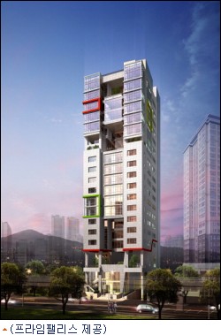 프라임팰리스는 지하 2층~지상 20층 규모로 지상 1~2층에 근린시설 및 상가, 지상 3층 커뮤니티 공간, 지상 4~12층 오피스텔(100실), 지상 13~20층 원룸형 도시형생활주택(83가구)으로 구성된다.