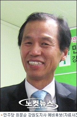 ▷최문순> 제가 정치인이기 이전에 우선 인간이니까 선후배 사이에 정치적 대결을 정면으로 하는 거에 대해서 심리적 부담이 상당히 컸습니다. 그래서... 거기에다가 이 선거가 그냥 지사직 하나의 선거가 아니라 전 국민들이 주시를 하고 있고, 지금 강원도가 생긴 이래 처음으로 정치적 주목을 받고 있습니다. 그래서 여러 가지로 부담이 되어서 나오지 않을 생각을 가지고 있었습니다.