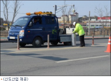 신도산업㈜이 개발한 시선유도봉 청소기는 종전방식의 단점을 보완한 것으로 최소의 인력으로 단시간 신속하고 깨끗하게 청소할 수 있어 관련 업계로부터 관심을 모으고 있다.