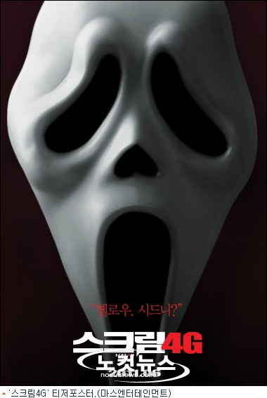 3편을 끝으로 막을 내렸던 할리우드 인기 공포 시리즈 ‘스크림’이 ‘스크림4G’(수입 마스 엔터테인먼트ㆍ롤링픽쳐스, 배급 시너지)로 돌아왔다. 11년 만에 귀환을 알린 ‘스크림4G’가 6월 초 국내 개봉을 확정하고, 1차 티저포스터를 공개했다.