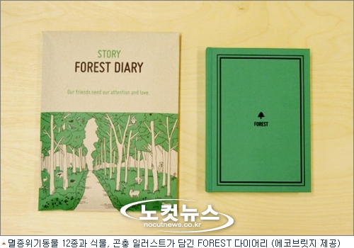 재생원료를 함유한 환경마크를 획득한 친환경용지를 사용한 'FOREST' 다이어리는 숲에 사는 멸종위기동물 12종과 식물, 곤충 일러스트가 담긴 만년 다이어리로, 멸종위기동물에 대한 소개 페이지를 비롯해 '에코 TREE 맵(지도)' 등을 수록했다.