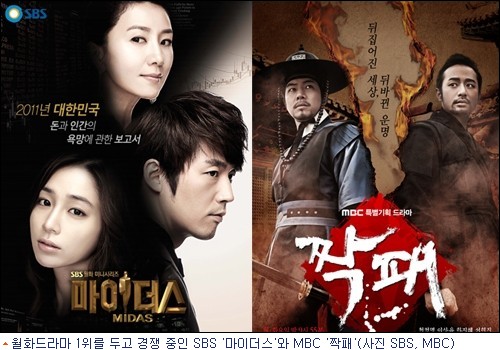 SBS 월화드라마 ‘마이더스’가 동시간대 방송되는 MBC ‘짝패’를 2회 연속 꺾고 월화극 1위 굳히기에 돌입했다.