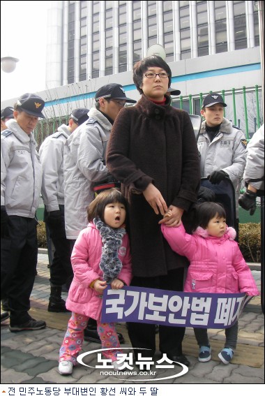10년 만에 두 딸을 처음으로 한품에 안아보는 남편을 바라 보던 황선(34·전 민주노동당 부대변인)씨는 울음을 몰래 삼켰다. 기나긴 수배생활로 두 딸을 제대로 만나보지조차 못했던 남편이 경찰에 붙잡히면서 오히려 아이들을 마음 편하게 만날 수 있는 역설적인 상황에 황 씨의 눈시울은 더욱 시큰해졌다.
