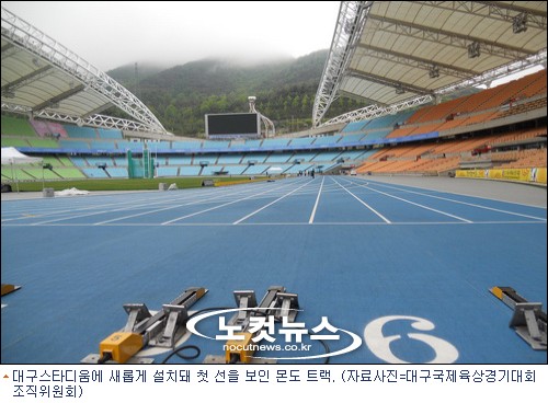 세계선수권 준비를 위해 2005년부터 시작된 대구국제육상경기대회. 7회째를 맞는 이번 대회에서 가장 큰 변화는 트랙이다. 대구스타디움은 지난해 12월 기존 어두운 색깔의 우레탄 재질을 대신해 18억원을 들여 시원한 파란색의 트랙으로 탈바꿈했고 지난 4월23일에는 국제육상경기연맹(IAAF)의 국제공인 1등급인 'Class-1' 인증을 받았다.