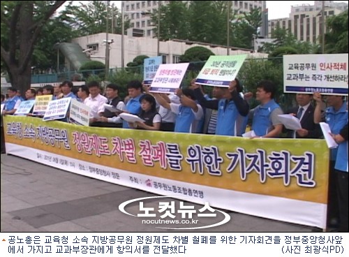 교과부는 이제라도 시·도교육청 소속 지방공무원의 근로조건 개선에 보다 적극적인 자세를 가져야 할 것이며, 현안문제와 관련 교육청노조와 협의를 거쳐 불합리하고 불평등한 제도를 합리적으로 개선하여야 할 것을 촉구 했다.