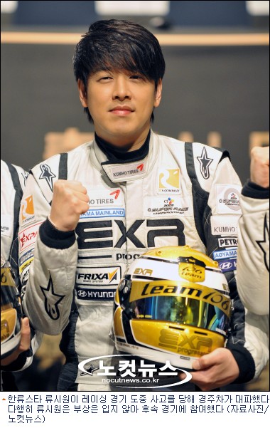 한류스타 류시원이 레이싱 경기 도중 사고를 당해 경주차가 대파했다.