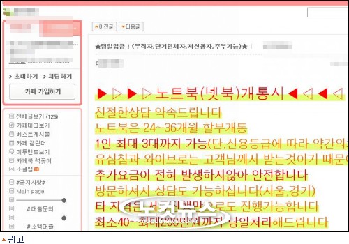 인터넷 카페, 스팸 문자메시지에 최근 자주 등장하는 속칭 ‘스마트폰 깡’ 광고다.