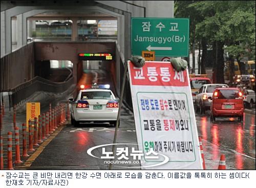 잠수교는 한강 수위가 5.5m를 넘으면 보행자 통제가, 6.2m 이상이면 차량 운행까지 전면 금지된다.