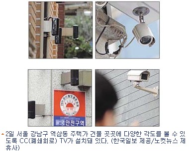 ▣ 대한민국은 CCTV 천국본지 취재진이 2일 대형 빌딩과 주택이 밀집한 서울 강남구 역삼동 일대를 점검한 결과, 반경 100m 이내의 CCTV가 300여 대에 달했다. 경찰은 전국에 설치된 CCTV를 200만대 이상으로 추산하고 있는데 특히, 기업이나 개인이 설치하는 CCTV가 우후죽순 늘고 있다.