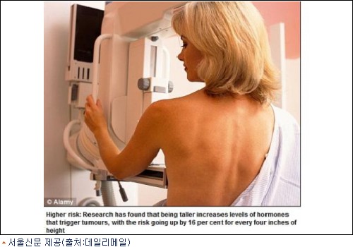 영국의 일간지 데일리 메일은 21일 명문 옥스포드 대학의 연구조사 결과를 인용해 키 큰 여성이 각종 흔한 암에 걸릴 확률이 3분의 1가량 높다고 보도했다.
