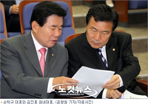 특히 김 원내대표는 이명박 대통령이 대선 공약으로 반값등록금을 내세웠다가 철회한 것에 이어 이번 당정청 회의를 "두번째 등록금 인하 사기극"이라고 규정하며 "이렇게 손바닥 뒤집듯 말을 바꾸면 한나라당의 뉴비전의 진정성을 믿을 수 있겠느냐"고 목소리를 높였다.