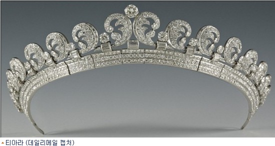 [BestNocut_R]케이트가 결혼식날 썼던 티아라는 엘리자베스 여왕이 빌려준 1939년 까르티에 티아라로 다이아몬드 1천여개로 장식돼 있다.