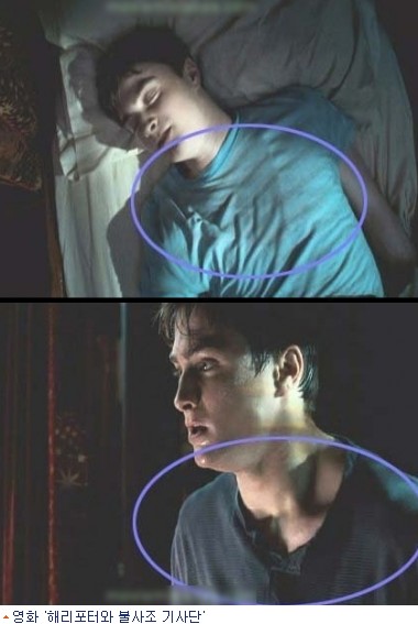 지난 2007년 개봉 영화 '해리포터와 불사조 기사단'에서는 잠을 자던 해리가 잠에서 깨어나자 입고 있던 옷이 갑자기 앞 부분에 단추가 달린 다른 티셔츠로 바뀌어 있다.