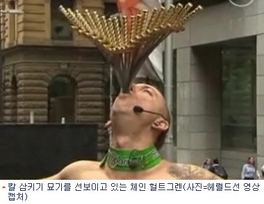 칼 삼키는 이색 묘기로 세계 기록까지 보유한 체인 헐트그렌(33)은 최근 뉴욕 맨해튼 길거리에서 공연을 하다가 공공장소에서 칼을 가지고 있었다는 이유로 경찰에 체포됐다.