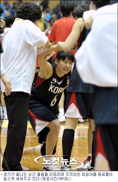 지난 28일 아시아 여자농구선수권 대회 결승에서 중국에게 3점차로 분패하고 2012년 런던올림픽 직행 티켓을 놓친 순간 한국 대표팀의 가드 최윤아(26·신한은행)는 코트에 주저앉아 펑펑 울었다.