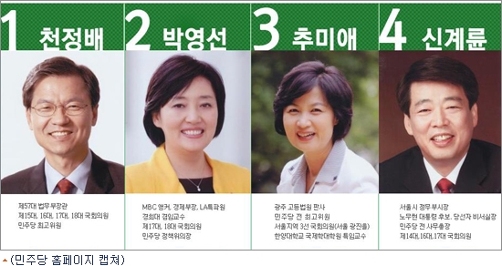 한편 추미애 의원은 광주 고등법원 판사를 지낸 경력을 이름 앞에 삽입했으며, 박영선 의원은 MBC 앵커와 경제부장을 지냈다는 것을 강조했다.