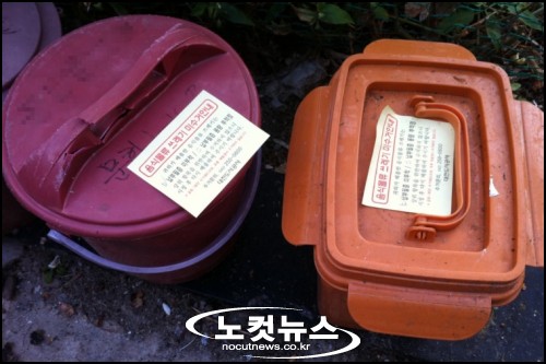 건물 앞에 놓인 음식물쓰레기 수거용기마다 '미수거 안내'라는 붉은 글씨가 선명했다. 용기 위에 부착된 종이에는 '납부필증을 부착하지 않은 음식물쓰레기는 수거할 수 없다'는 내용이 담겨 있었다. 안에 담긴 오래된 음식물에는 악취가 진동했다. 곳곳에 입을 벌린 채 방치된 용기들은 보기만 해도 눈살이 절로 찌푸려졌다.