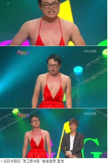 이날 박영진 '개그콘서트(이하 개콘)의 문제점'에 대해 이야기 하던 도중 "여자들이 실시간 검색어 1위에 오른다는 것은 바로 이런 것"이라며 갑자기 상의를 벗었다. 그러자 아슬아슬한 빨간색 드레스와 함께 박영진의 속살이 드러났다.